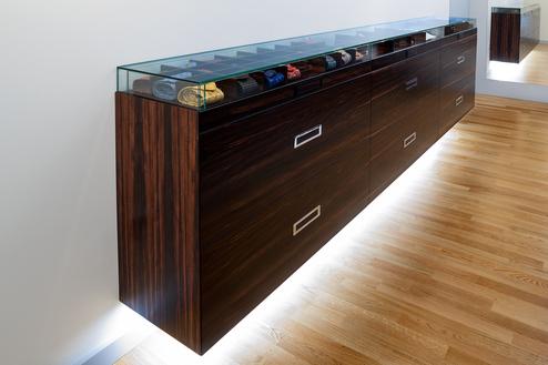 Auch wenn für uns der Entstehungsprozess einen hohen Stellenwert einnimmt, ist es doch das Endprodukt – der fertige Raum – der bleibenden Eindruck hinterlässt. Im wahrsten Sinne des Wortes. Denn wenn Optik und Funktionalität perfekt zusammenspielen, wenn Materialität und Design höchsten Ansprüchen genügen und wenn Sie als Kunde aus dem Lächeln nicht mehr rauskommen – dann ist es echte H.-Arbeit. Einige dieser Arbeiten zeigen wir Ihnen gern. Lassen Sie sich inspirieren!